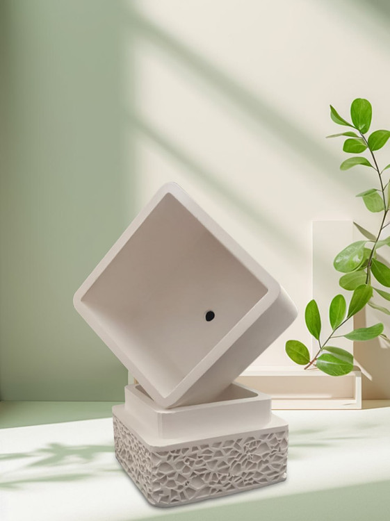 ابعاد گلدان 10x10x10 سانتی متر - ابعاد زیرگلدانی 7x10x10 سانتی متر - ساخته شده با مواد معدنی و گیاهی بدون مواد شیمیایی و نفتی